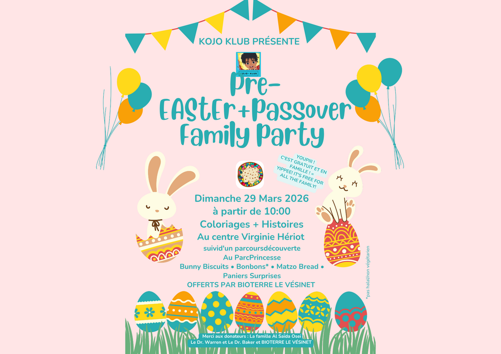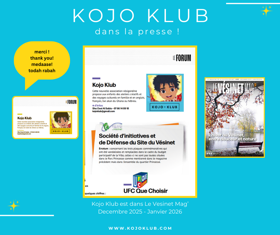KOJO KLUB qui a pour but d'ateliers créatif et multilingues (anglais, français, twi akan et hébreu) a fêté le printemps a travers un atelier d'art en 3D, en terminant par un parcours de découverte et une fête au Square Lorraine avec un partage de fruits, légumes offerts par Bioterre du Vésinet et des gourmandises avec des enfants de l'association et des nouvelles familles de la ville ! Happy Spring !